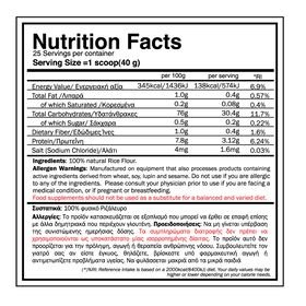 Το Rice UpLift είναι ένα κορυφαίο συμπλήρωμα υδατανθράκων, φτιαγμένο από 100% καθαρό ρύζι. Αποτελεί μια πλούσια αλλά και φυσική πηγή ενέργειας, καθώς περιέχει 30g υδατανθράκων ανά μερίδα, ενώ δεν περιέχει καθόλου γεύση, πρόσθετα ή συντηρητικά. Είναι κατάλληλο για φυτοφάγους και άτομα που αποφεύγουν τη γλουτένη.