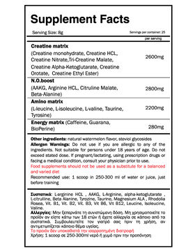 Δοσολογία: 1 scoop(8γρ) 30 λεπτά πρίν την προπόνηση