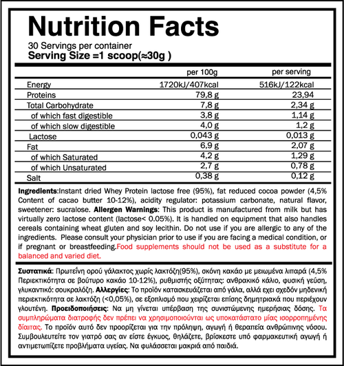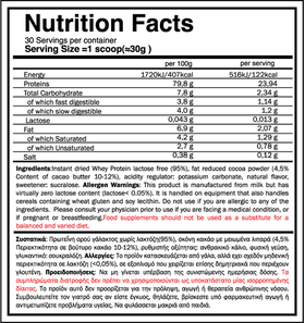 - Σας δίνει 24g πρωτεΐνης ορού γάλακτος/ scoop(30γρ)