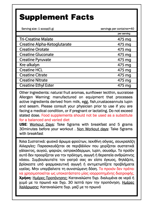 Το CreaMix είναι μια ειδικά σχεδιασμένη φόρμουλα η οποία περιλαμβάνει 10 διαφορετικά είδη κρεατίνης.