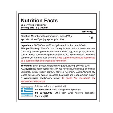 Πλεονεκτήματα της Creatine monohydrate της Gold Touch: